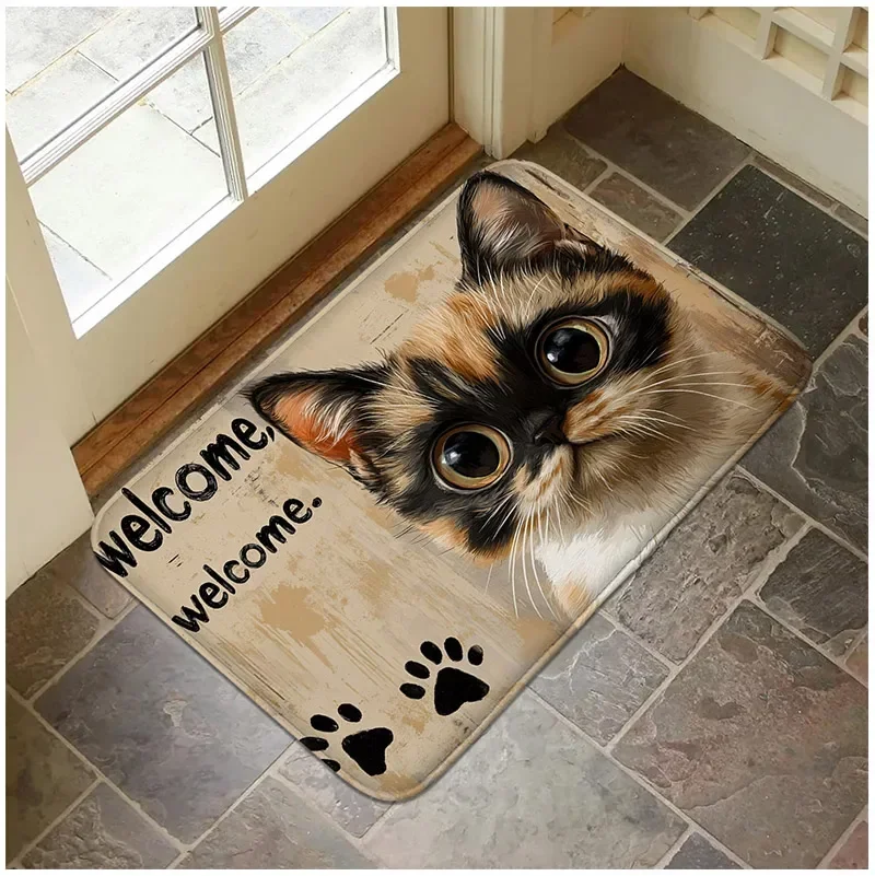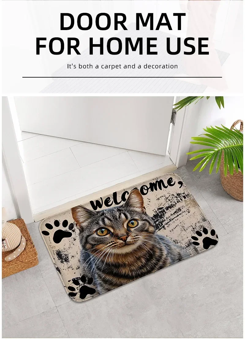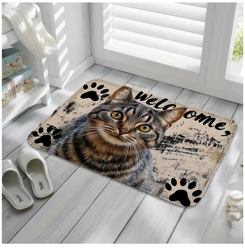 Non Slip Bathroom Rug with Cute Cat Paw Prints Washable Soft Mat for Home Decor