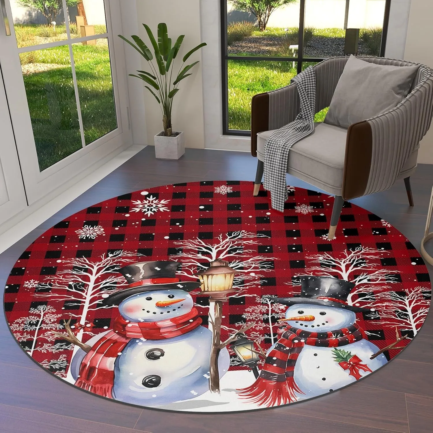 Winter Christmas Snowman Round Rug for Living Room Non Slip Bedroom Mats Circle Rugs for Room Home Christmas Decorations Carpet