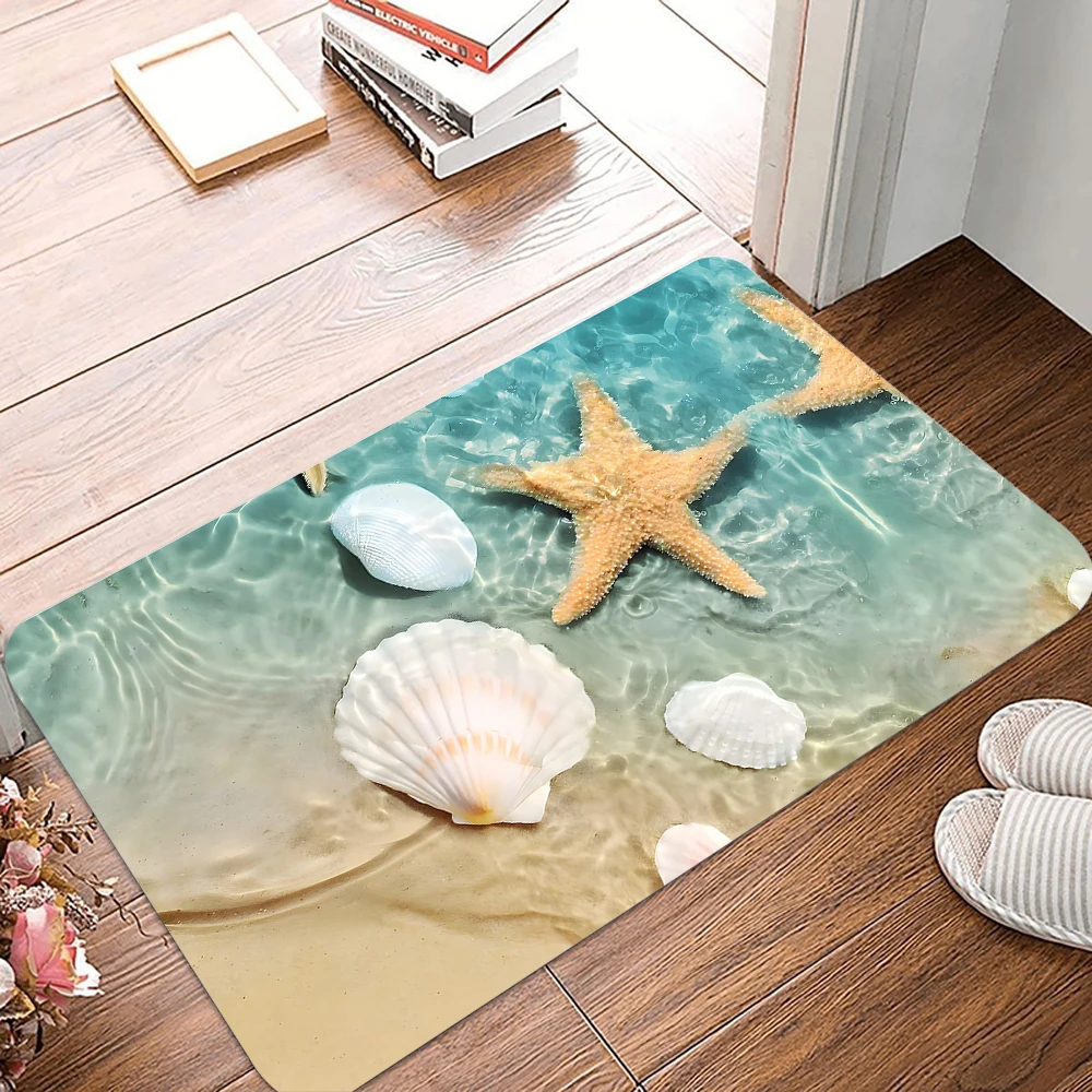 Beach Starfish Beach Theme Ocean Shell Doormat Non-Slip Washable Carpet for Living Room Bedroom Bathroom Kitchen and Laundry Rug