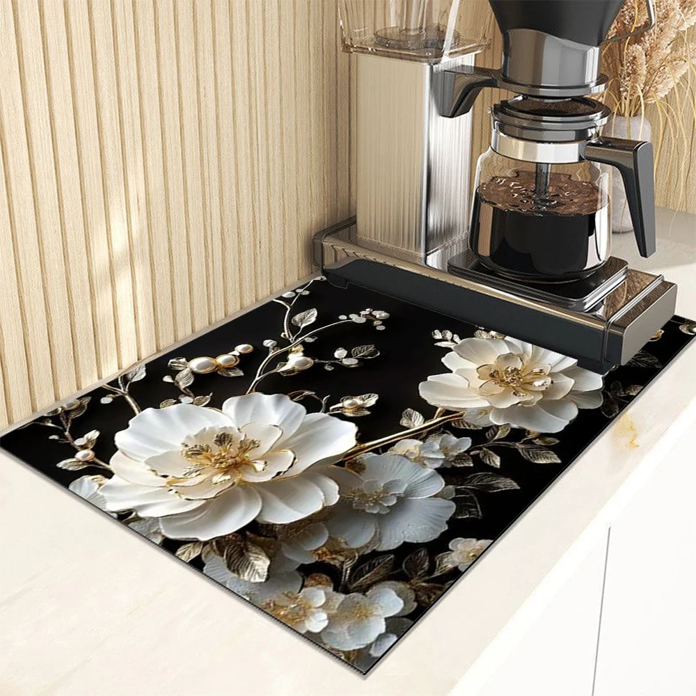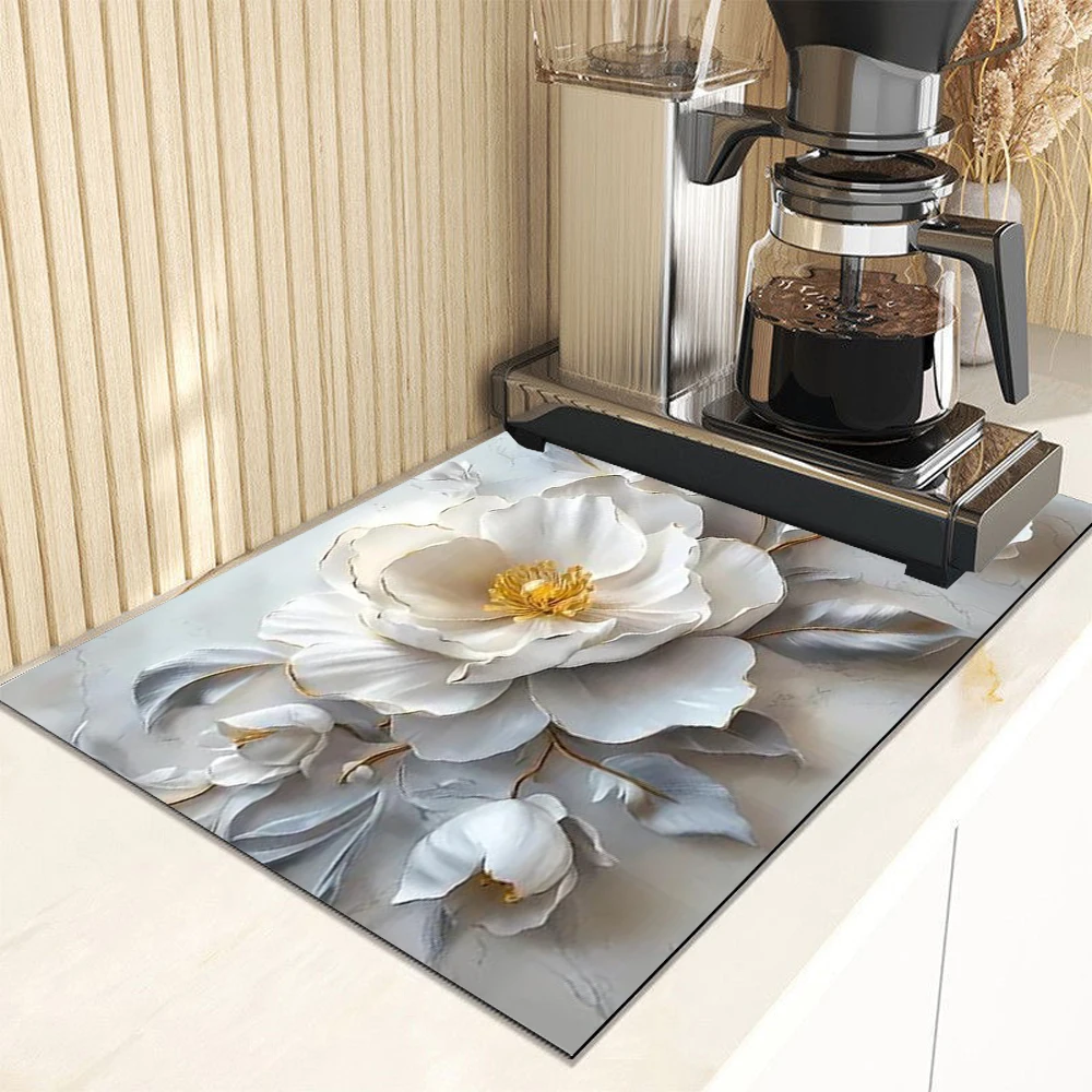 Dish Drying Mat Super Absorbent Dish Mat Drying Kitchen Mat with Floral Hide Stain Draining Mat for Kitchen Coffee Bar Decor