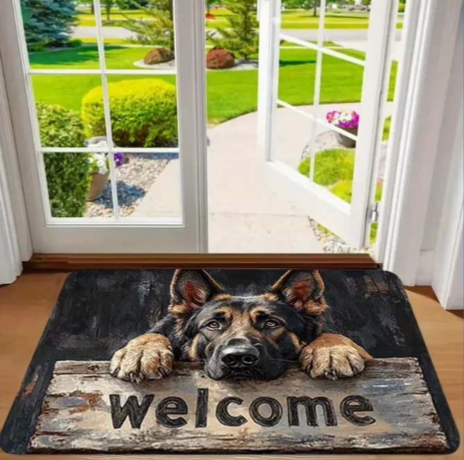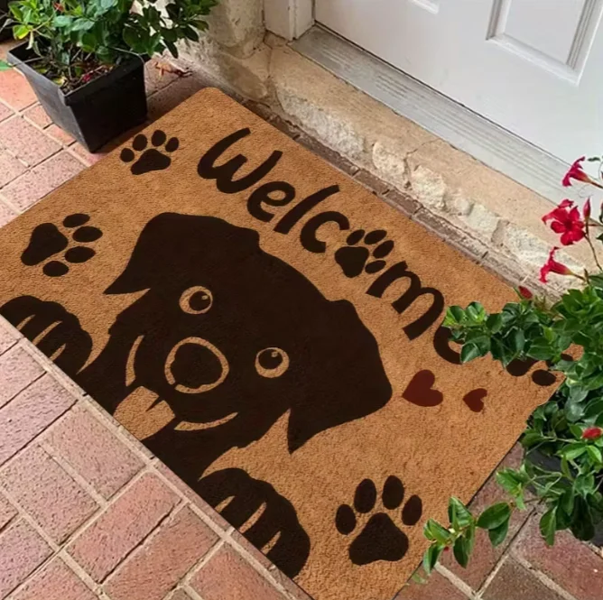 Black Dog-Themed Welcome Door Mat with Paw Prints Soft Polyester Mat for Perfect for Hallways Entryways Bathrooms and Room Decor