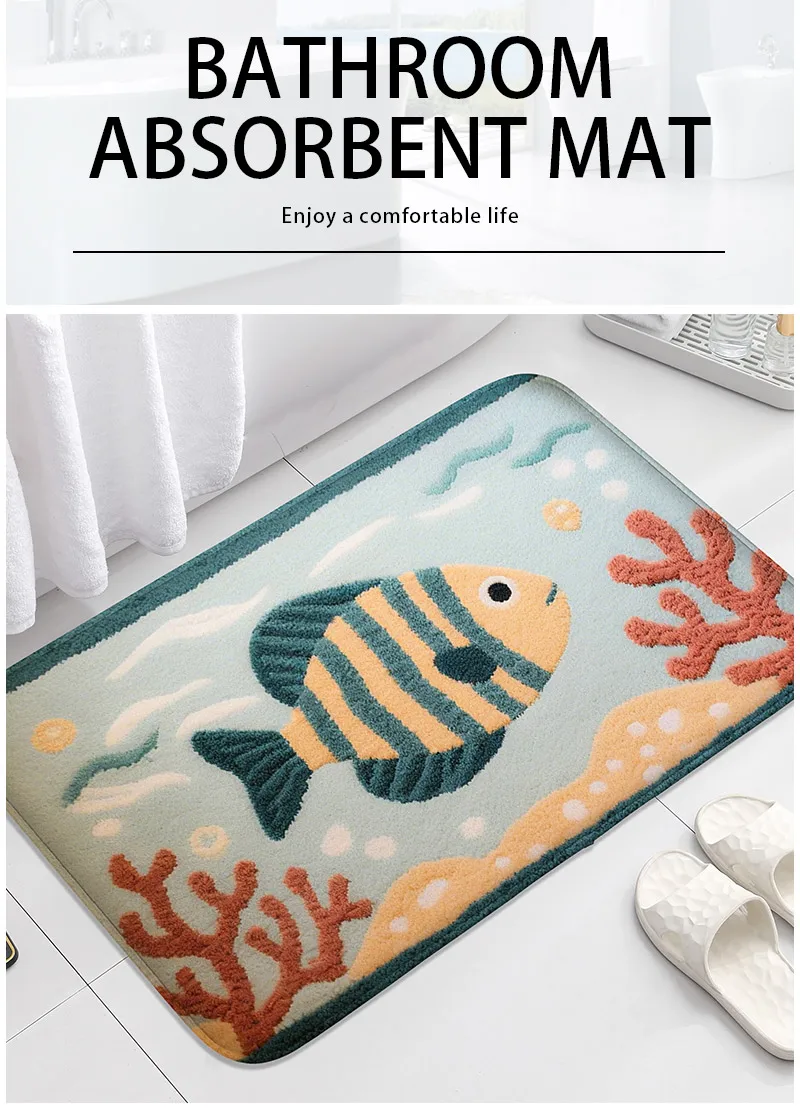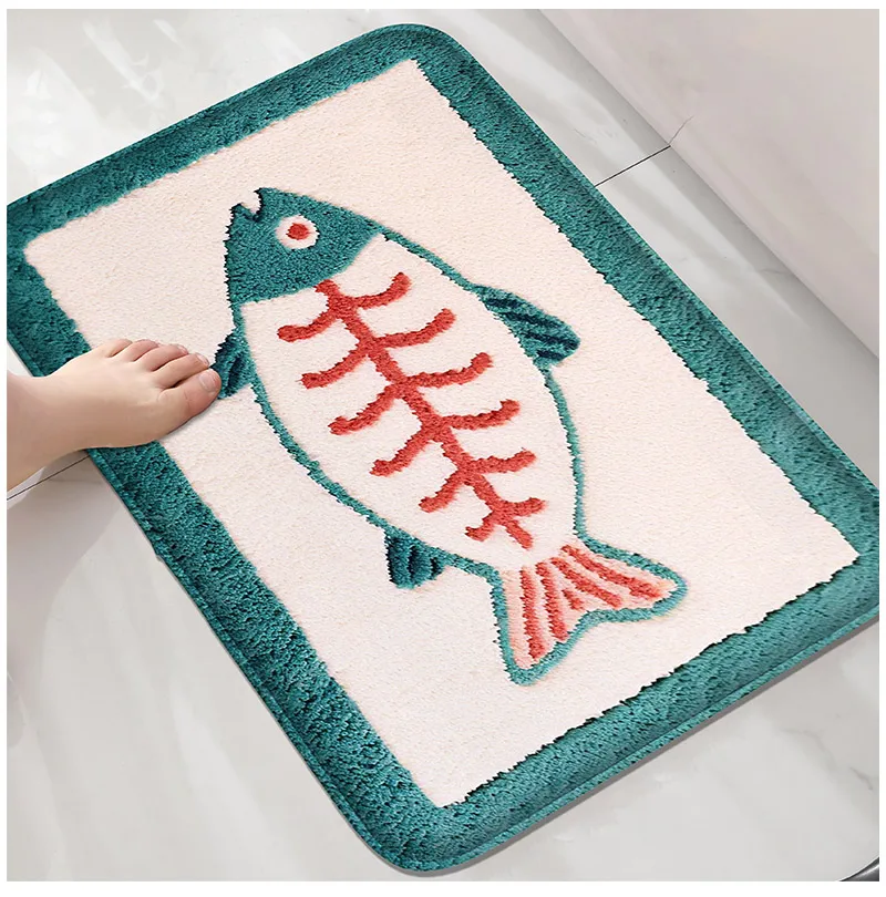 Fish bathroom anti slip mat shower room small carpet bathroom absorbent foot mat home decoration mat machine washable
