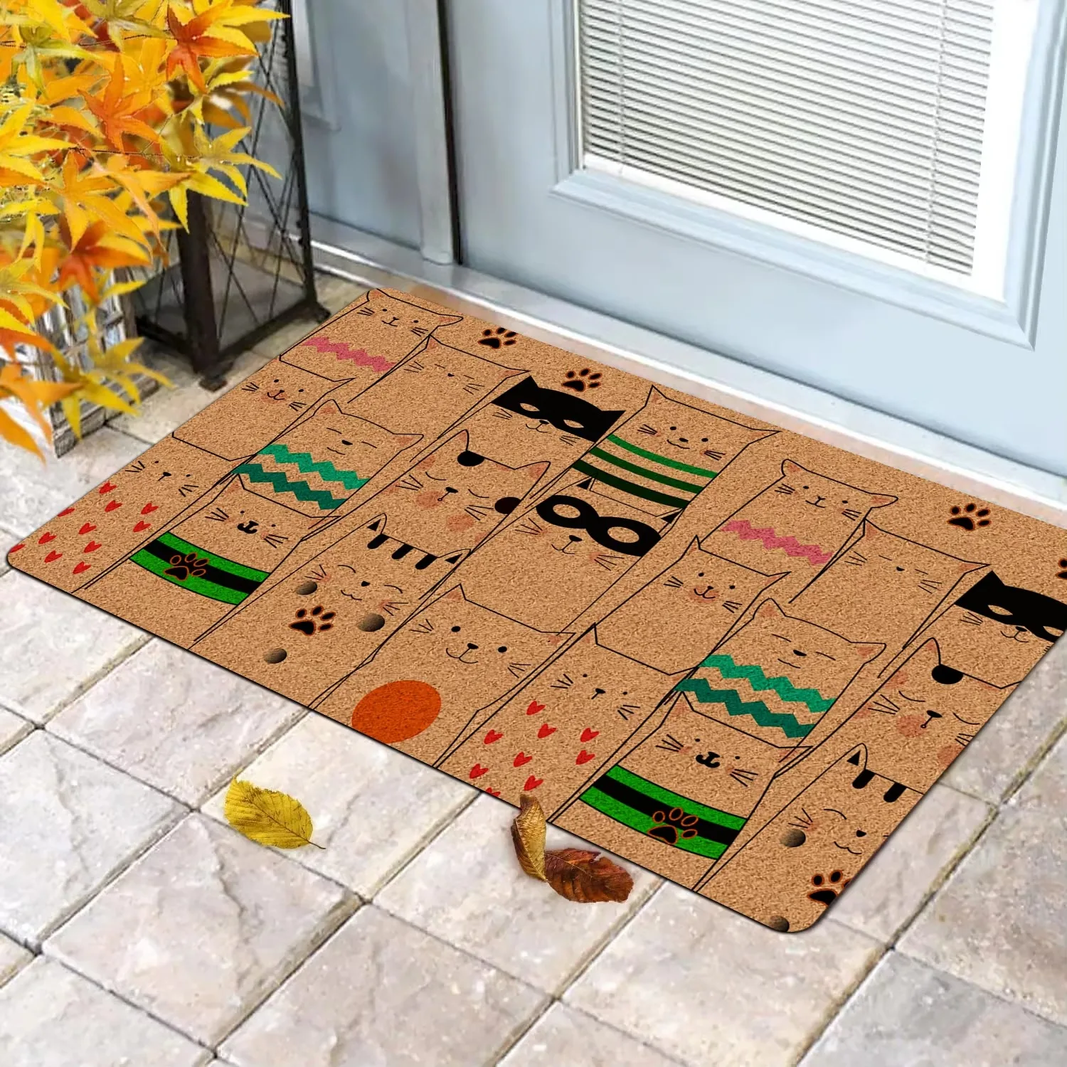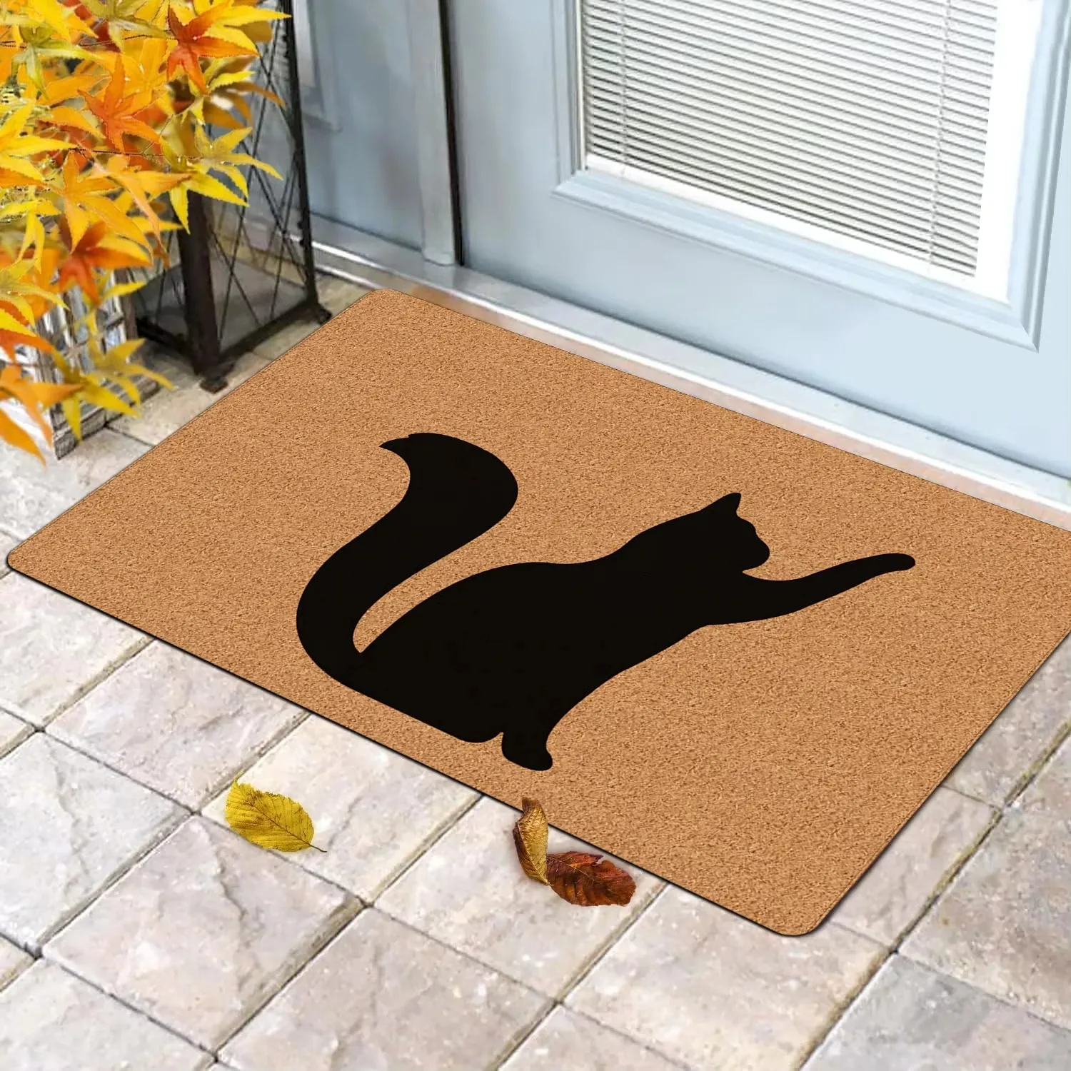 Cute Cat Theme Door Mat With Black Cat Silhouette Cat Patterns Soft Decorative Entryway Rug For Home Decor Gifts