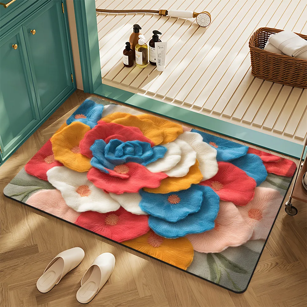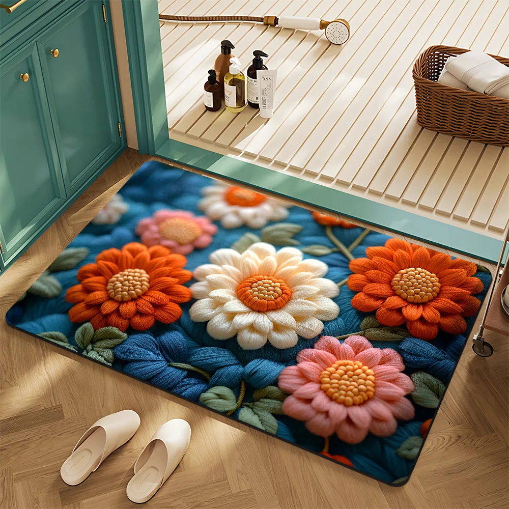 Floral Succulent 3D Embossed Rustic HOME Door Mat Soft Absorbent Non-slip Rug Carpet for Bathroom Entryway Home Decoration