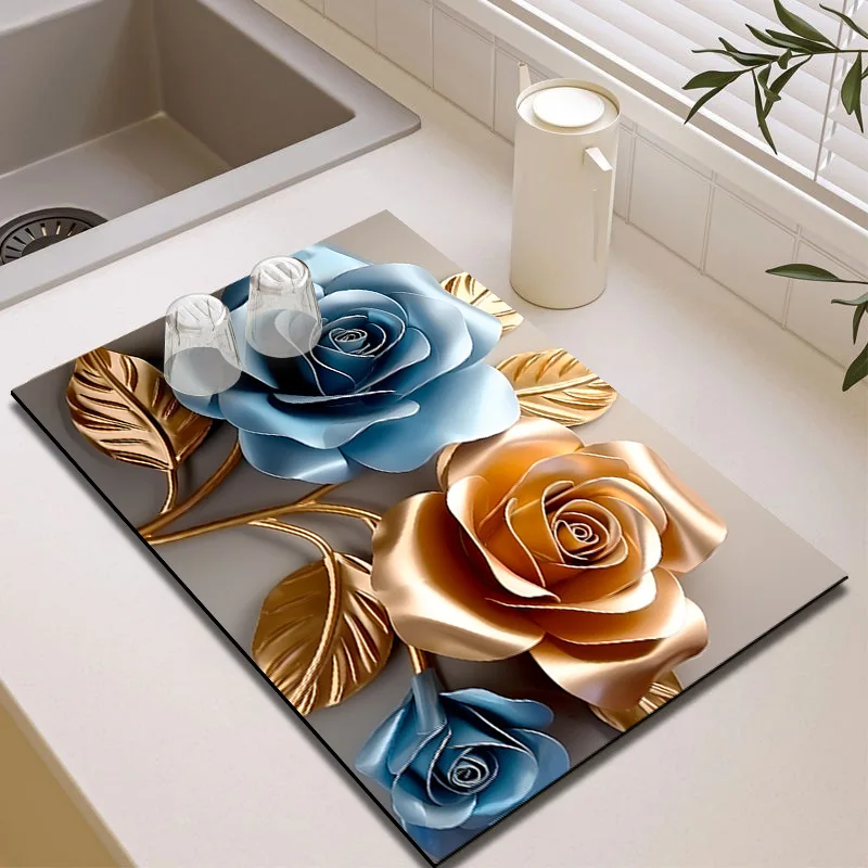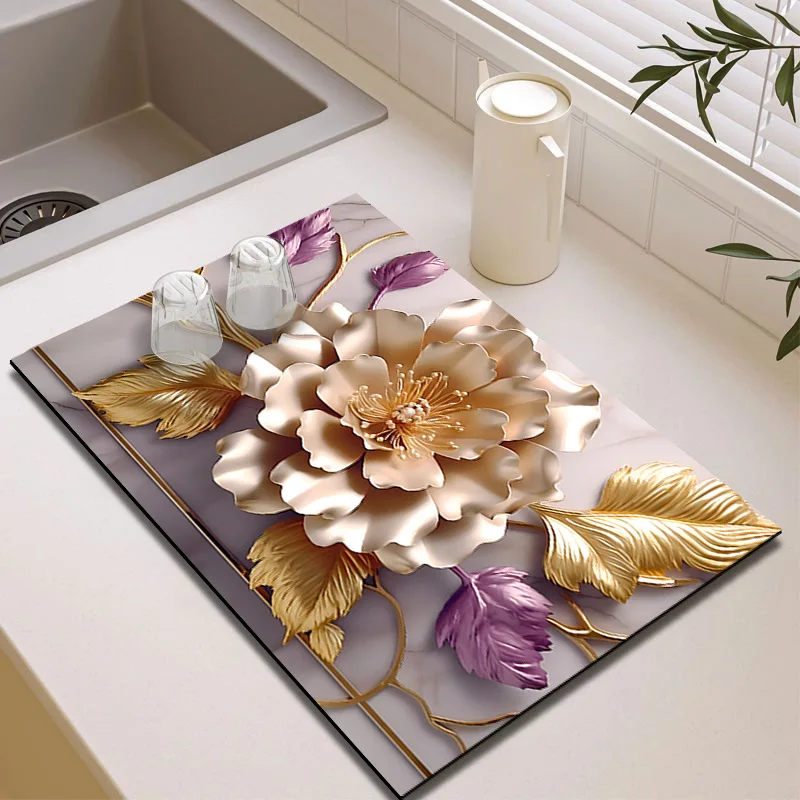 Retro Luxury Dish Drying Mat Kitchen Cafe Maker Mats Diatom Mud Drain Pad Dishes Cup Bottle Draining Absorbent Table Decoration